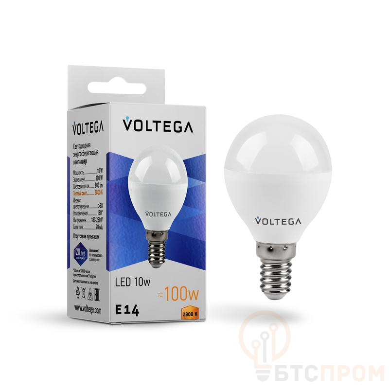 Светодиодная лампа Voltega Simple Globe (шар) мощностью 10 Вт с цоколем E14. Теплый белый свет 2800К. Сферическая форма обеспечивает равномерное круговое рассеивание света, создавая мягкое и бестеневое освещение. Идеальна для закрытых плафонов, бра и люстр, где лампа полностью видна и является частью декора. Теплый свет наполняет комнату уютом и комфортом. Качественные материалы и сборка гарантируют длительную работу.