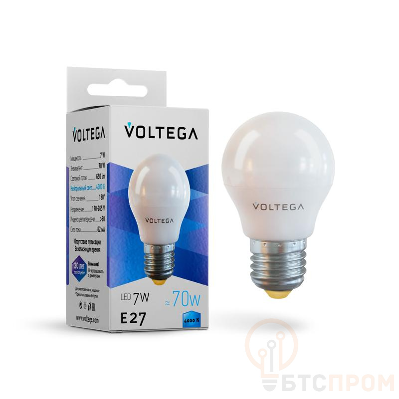 Светодиодная лампа Voltega Simple Globe 7Вт станет отличным выбором для основного или локального освещения в жилых и коммерческих помещениях. Создавая комфортный нейтральный белый свет с цветовой температурой 4000K, она идеально подходит для кухни, ванной комнаты, офиса, коридора или подсобных помещений.