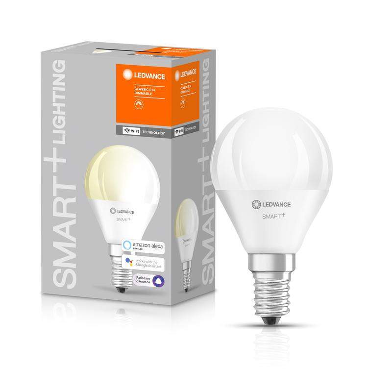 Умная светодиодная лампа с возможностью диммирования через приложение LEDVANCE SMART+. Работает через WiFi.