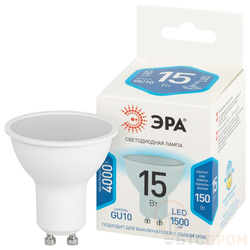 Лампа светодиодная STD LED MR16-15W-840-GU10 15Вт софит 4000К нейтр. бел. свет GU10 170-265В Эра Б0066839