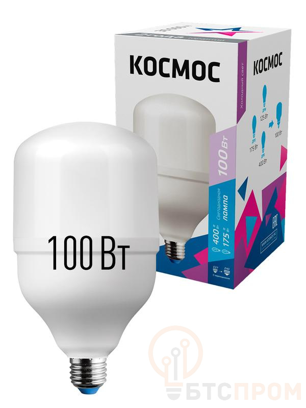 Лампа светодиодная высокомощная HWLED 100Вт 6500К холод. бел. E27 220В (переходник с E27 на E40 в компл.) КОСМОС LksmHWLED100WE2765