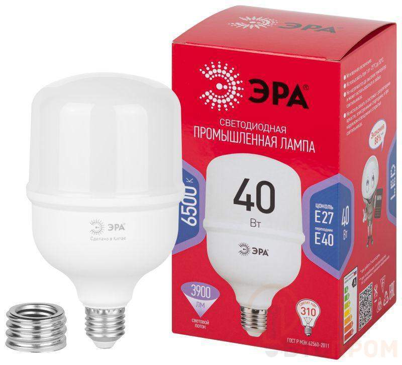 Лампа светодиодная высокомощная RED LINE LED POWER T100-40W-6500-E27/E40 R 40Вт Т100 колокол 6500 холод. бел. E27/E40 (переходник в компл.) 3900лм Эра Б0063844