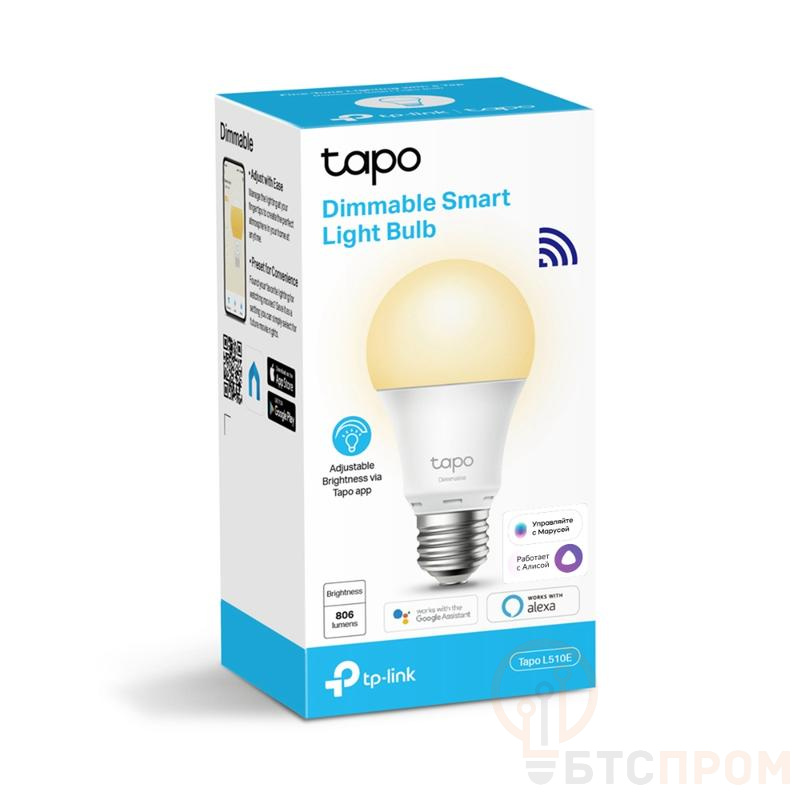 Умная лампа Tapo L510E Wi-Fi TP-Link — умная светодиодная лампа с цоколем E27. Управляется через приложение Tapo по Wi-Fi: включение/выключение, регулировка яркости (диммирование). Поддерживает голосовое управление через Alexa и Google Assistant. Теплый белый свет (2700K) создает уютную атмосферу. Установите расписание для автоматизации домашнего освещения.