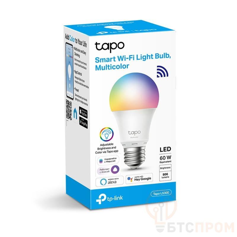 Умная лампа Tapo L530E Wi-Fi TP-Link — умная многоцветная лампа с цоколем E27. Позволяет выбирать миллионы оттенков цвета и белого света (от 2700K до 6500K). Управление через приложение Tapo, создание сцен и расписаний. Поддерживает голосовое управление. Превращает любое помещение в арену для творчества и создания уникальной атмосферы.