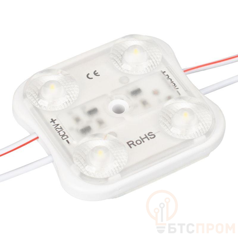 Герметичный светодиодный модуль IP67, ХОЛОДНЫЙ 7500–8000 К, напряжение 12 В, мощность 1.2 Вт, св. поток 180 лм, 3 светодиода SMD 2835, угол 170°. 20 шт на проводе, расстояние между центрами модулей 255 мм, длина провода между модулями 210 мм, рекомендуемая глубина установки 120–300 мм. Размер 45х41.5х11.2 мм. Гарантия 5 лет. Высокая эффективность - 150 лм/Вт. Технология Constant Current