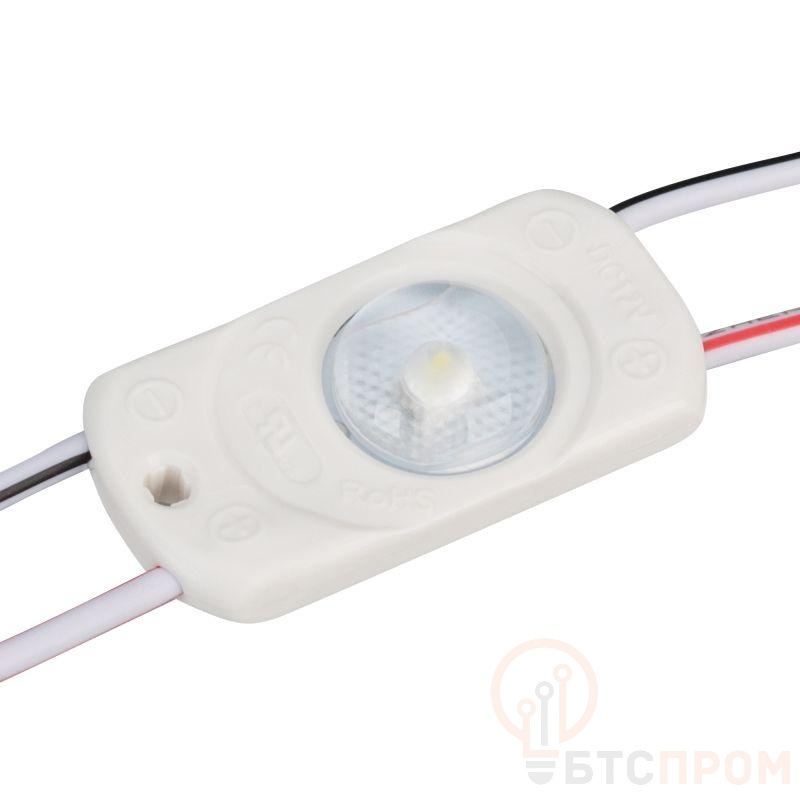 Герметичный светодиодный модуль IP65, ДНЕВНОЙ 4000 К, напряжение 12 В, мощность 0.6 Вт, св. поток 60 лм, 1 светодиод SMD 2835, угол 170°. 20 шт на проводе, расстояние между центрами модулей 140 мм, длина провода между модулями 104 мм, рекомендуемая глубина установки 30–60 мм. Размер 36?17.5?6.2 мм. Гарантия 5 лет. Высокая эффективность.