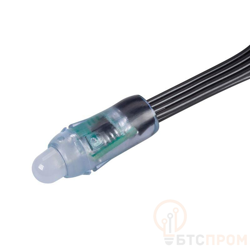Управляемый светодиодный модуль DMX, цвет свечения RGB, микросхема GS8512, напряжение 12 В, мощность 0.3 Вт, 1 светодиод DIP 8 мм, угол 90°. 50 шт на проводе, расстояние между модулями 100 мм. Уровень герметизации IP67. Размер O12?32 мм. Гарантия 5 лет.