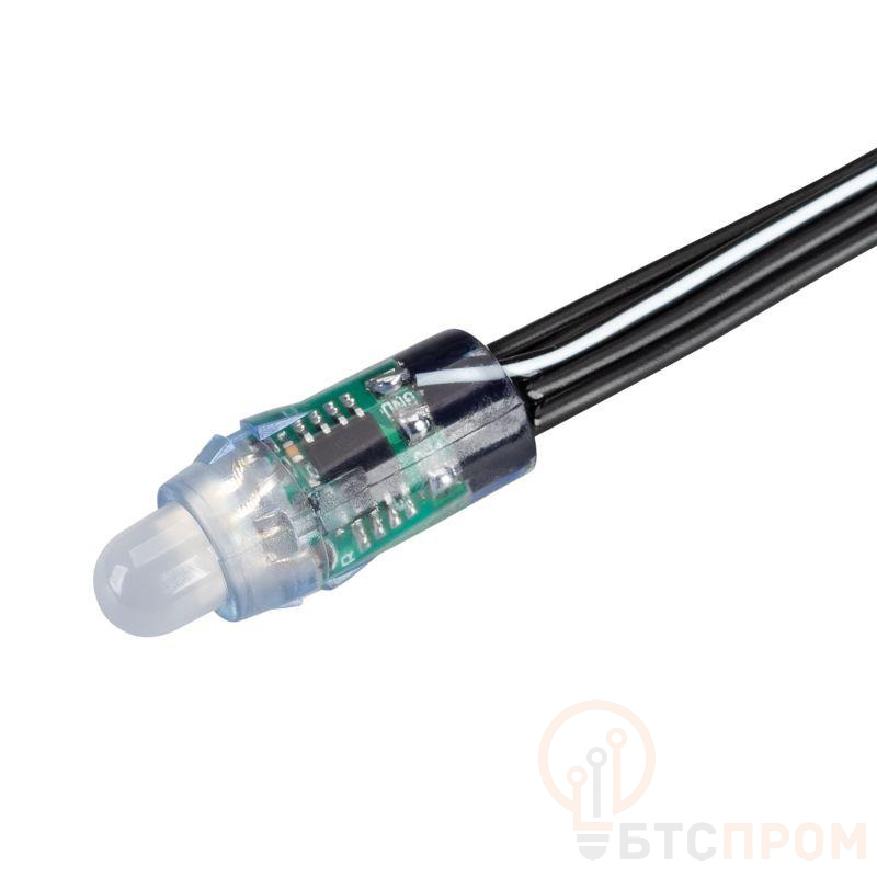 Управляемый светодиодный модуль SPI, цвет свечения ХОЛОДНЫЙ 10000K, индекс цветопередачи CRI>80, микросхема LB1908 (совместима с SM16703, WS2811, UCS1903), функция обхода битого пикселя, напряжение 12 В, мощность 0.3 Вт, 1 светодиод DIP 8 мм, угол 90°. 50 шт на проводе, расстояние между модулями 100 мм. Уровень герметизации IP67. Размер O12?32 мм. Гарантия 5 лет.