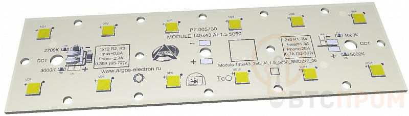 Модуль имеет компактные размеры 145×43 мм и предназначен для встраивания в различные осветительные конструкции. Благодаря надежной сборке и качественным компонентам, данный модуль демонстрирует высокую энергоэффективность и долговечность, что делает его экономически выгодным решением для коммерческого и промышленного освещения.