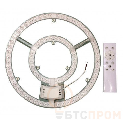 Компания ЭРА разработала и выпустила серию универсальных компонентов светодиодные модули с пультом управления. Данная разработка предназначена для замены штатных элементов или для установки в светильники, в которых источником света служила стандартная лампа. Светодиодный модуль выступает как сменный элемент, который может подойти к рассеивателям любого дизайна. Благодаря наличию пульта управления можно менять цветовую температуру в диапазоне 3000 7000 К, что позволяет использовать светодиодный светильник в помещениях с широким функционалом: от уютной спальни до строгого офиса. Корпус изготовлен из металла, в него встроен LED-модуль. Диаметр светильника составляет 31 см, мощность лампы 36 Вт, срок службы лампы составляет 30000 часов.