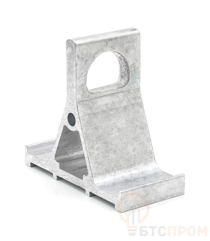 Анкерный кронштейн ВК для магистрали применяется для крепления анкерного зажима для магистрального СИП. Наличие ребер в основании кронштейна обеспечивает необходимое расстояние для надежного крепления кронштейна к опоре стальной монтажной лентой шириной 20 мм.