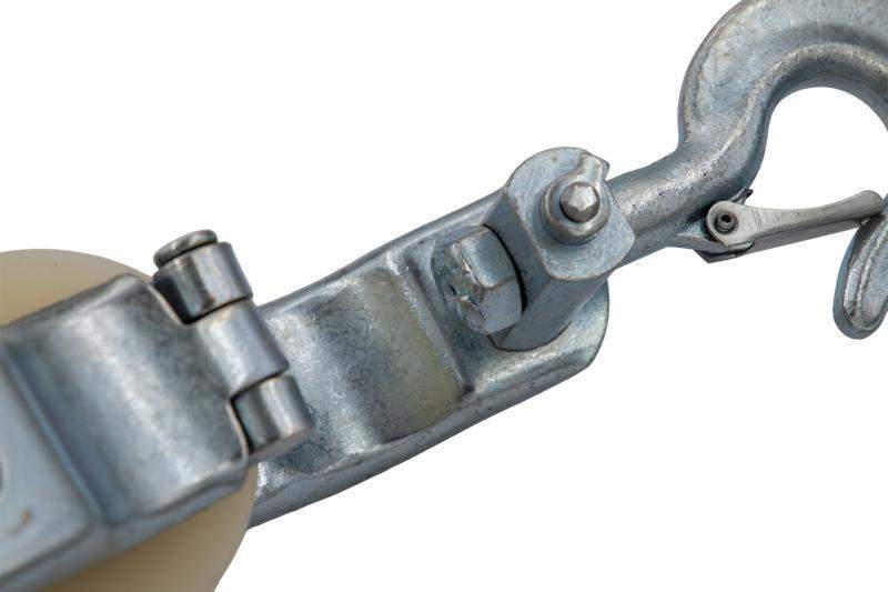 Раскаточный ролик предназачен с целью протяжки проводов ВЛ и ВОЛС по опорам, устанавливается на каждой опоре и обеспечивает протяжку при угле поворота до 30 градусов. Установка ролика возможна как при помощи подвеса - крюка, так и опорно - при помощи скобы. Остов ролика выполнен из алюминиевого сплава, ролик выполнен из нейлона. В верхней части ролика установлен крюк с подпружиненным зевом, исключающим падение изделия с высоты и обеспечивающим установку подвесного типа. В нижней части остова расположена скоба с двумя болтами, скоба позволяет установить ролик на профиле металлоконструкций, раствор скобы не более 10мм - обеспечивает установку опорного типа. Размещение провода/пучка проводников производится путем откидывания щеки на боковой части остова. Щека имеет откидной механизм, фиксация щеки производится путем использования винта-барашка Максимальная нагрузка статичная, кг - 500 Диаметр ручья ролика, мм - 50 Внешний диаметр ролика, мм - 80