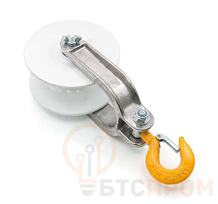 Предназначены для растяжки СИП по опорам. Ролик PM1 — применяется на промежуточных опорах. Подвес ролика осуществляется непосредственно на арматуру СИП с помощью поворотного крюка. Наличие откидной щеки позволяет без особых усилий производить выемку провода после его раскатки. Предельная нагрузка: 11 кН, ширина ручья 65 мм.