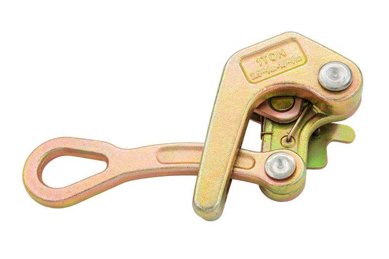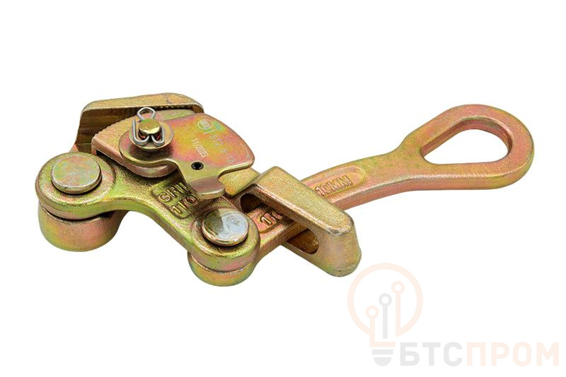 Монтажный зажим предназначен для удержания проводников круглого сечения при изменении тяжения на электроустановках. Зажим представляет собой шарнирно-губцевое подпружиненное соединение с контактными площадками. Контактные площадки имеют вогнутые плоскости с накаткой для лучшего удержания проводников. Зажим подходит для удержания проводников без оболочки и с оболочкой (изоляцией). Зажим оснащен хвостовиком с проушиной, служащий для соединения с тяговыми устройствами (лебедки, кабестаны, полиспасты и пр.) На боковой части зажима находится запорная щека, обеспечивающая удержание проводника ит самопроизвольного выпадения из рабочей части зажима - контактных площадок. Диаметр проводников, мм - 2,5-16 Статическая нагрузка максимальная, кг - 1000