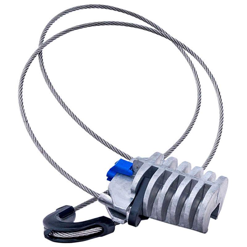 1. Область применения: Зажим анкерный РА-07-520 предназначен для анкерного (натяжного) крепления оптического кабеля с вынесенным силовым элементом (ОК типа «8») на опорах воздушных линий электропередачи (ВЛИ 0,4/1 кВ) и различных сооружениях. Установка зажима производится без применения инструментов. 2. Технические характеристики: Корпус и клинья зажима изготовлены из из сплава ЦАМ; хомут – из пластмассы. Тросик зажима изготовлен из нержавеющей стали, с креплениями на обоих концах для удобства монтажа. Зажим изготовлен в климатическом исполнении УХЛ категории 1 по ГОСТ 15150. Зажим устойчив к УФ излучению, повышенной и пониженной температуре, к тепловому и световому воздействию солнечной радиации. Диаметр силового элемента (по изоляции), мм – 5-7; Минимальная разрушающая нагрузка, кН – 5,5; Расстояние между корпусом и точкой подвеса, мм – 520±5; Масса зажима, кг – 0,2; Температура эксплуатации, °С – от -50 до +60