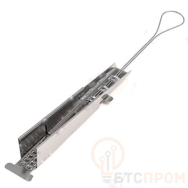 Зажим анкерный ODWAC-22 предназначен для анкерного крепления плоских, самонесущих и FTTH кабелей на крюках, расположенных на опорах и стенах. Конструкция анкерного зажима позволяет надежно удерживать оптический кабель и защищает оболочку оптического кабеля от механических повреждений. Зажим состоит из клина с неразъемной петлей, корпуса с ребристой контактной поверхностью и перфорированной подложки, изготовленных из нержавеющей стали