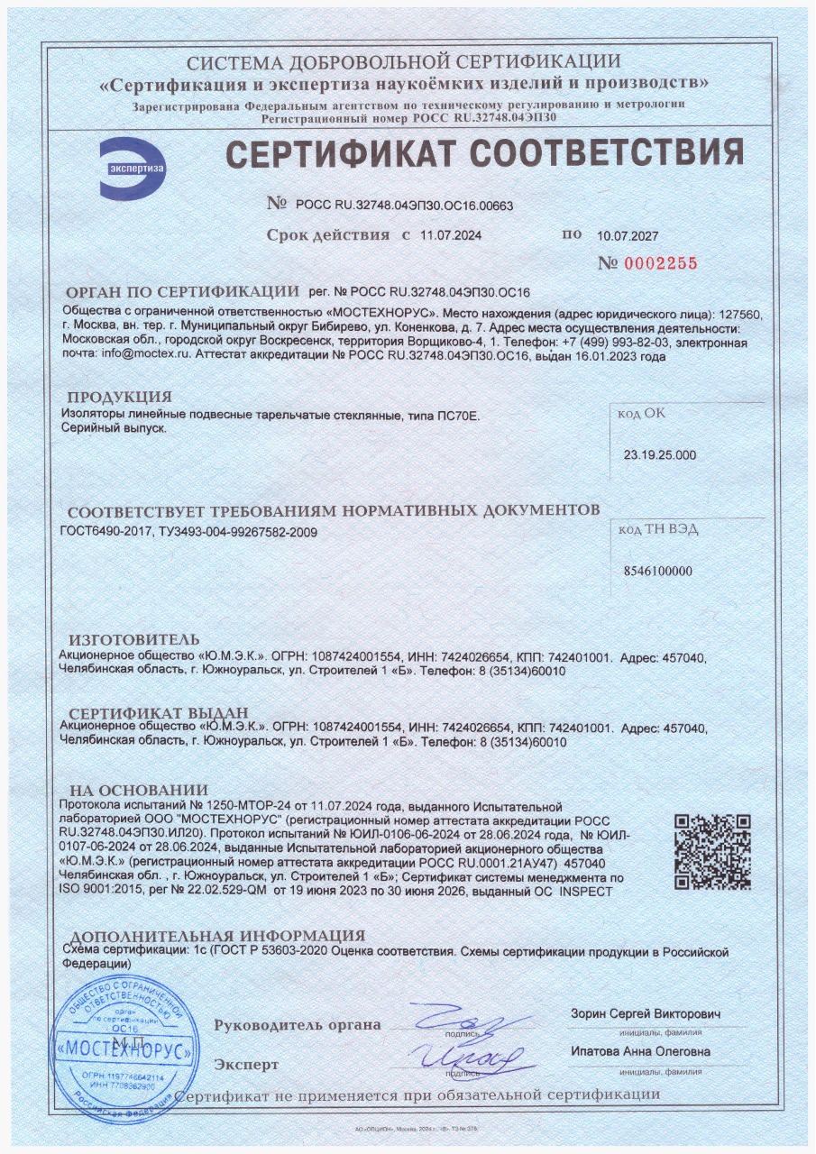 • минимальная разрушающая механическая нагрузка — 70 кН;