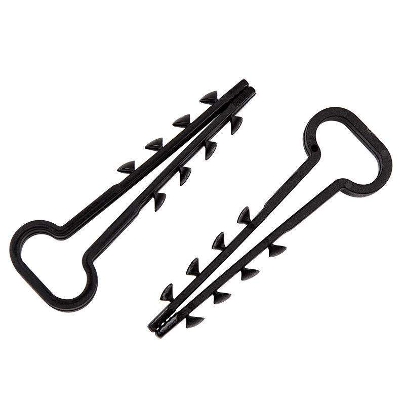 Прямоугольный дюбель-хомут 6-12 мм предназначен для крепления плоского кабеля к поверхности открытым или закрытым способом. Дюбель-хомут представляет собой крепежное изделие с петлей для удержания кабеля и уникальной системой боковых шипов типа «елочка». Благодаря шипам крепеж легко вставляется в отверстие и не выпадает, а для извлечения такого дюбеля понадобятся плоскогубцы. Важно: для надежной фиксации дюбеля необходимо соблюдать точные параметры при сверлении отверстия, а для этого желательно использовать новую оснастку, которая не успела износиться. Дюбель может быть установлен в бетон, кирпич, газобетон и природный камень. Морозостойкие добавки добавляют крепежу устойчивость к низким температурам и позволяют использовать его на улице или в неотапливаемых помещениях. В упаковке 100 дюбель-хомутов черного цвета.