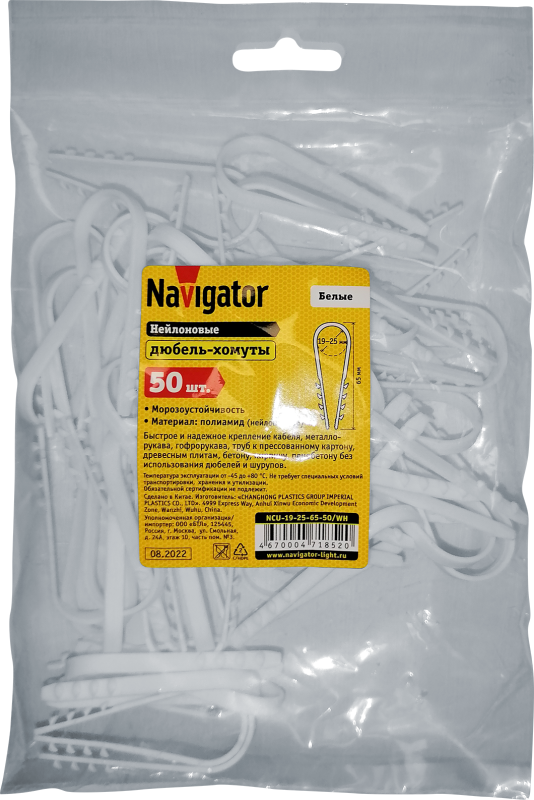 Дюбель-хомут для круглого кабеля 71 852 NCU-19-25-65-50/WH бел. (уп.50шт) Navigator 71852 фото в каталоге от BTSprom.by