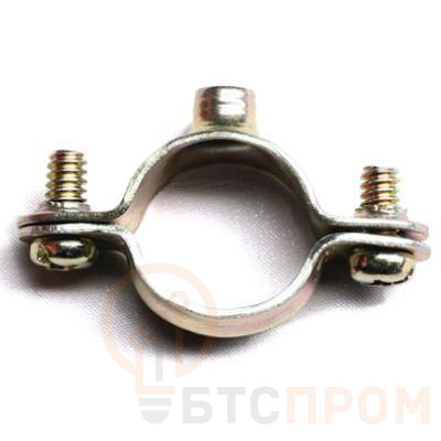 Хомут стальной с внутренней резьбой М6 для крепления пластиковых и металлических труб к поверхности стен, потолков, полов и перегородок. Диаметр - 32 мм. Материал: оцинкованная сталь. В хомуте сквозное отверстие с внуренней резьбой М6