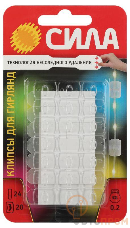 Клипса SCC-D20-T20 для гирлянд с технологией бесследного удаления 24 полоски до 200 г прозр. (уп.20шт) СИЛА Б0060138