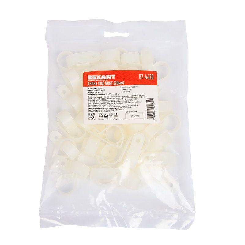 Скоба под винт REXANT предназначена для крепления кабелей, пучков проводов, гофрорукавов, металлорукавов и труб к различным поверхностям (кроме металлических). Изделие представляет собой нейлоновую петлю, два конца которой имеют отверстия для крепления к поверхности. Для установки скобы вы можете самостоятельно выбрать наиболее подходящий либо имеющийся у вас в наличии крепеж: саморез, винт с дюбелем и т. д. Скоба оптимально подходит для организации открытой проводки. Может быть закреплена внутри подвесных потолков или в различном оборудовании.