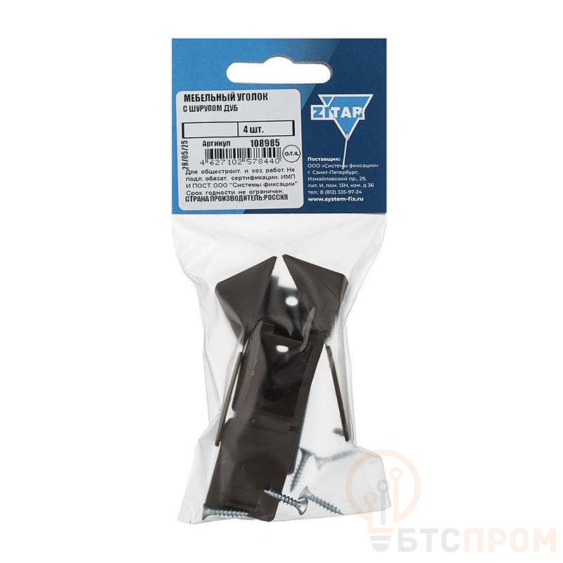 Мебельный уголок с шурупом от бренда Zitar (Tech-Krep) — это надежное и простое в установке решение для усиления каркасов и соединения элементов под прямым углом. Изделие изготовлено из прочного стального сплава и имеет антикоррозийное покрытие, обеспечивающее долговечность. Декоративное покрытие "дуб" органично впишется в интерьер мебели из дерева или плит ДСП.