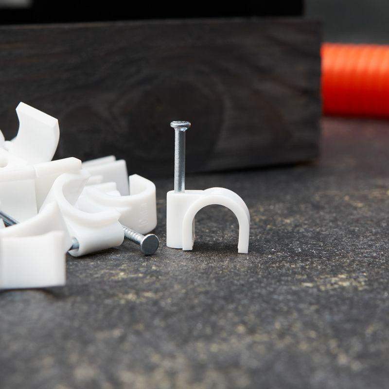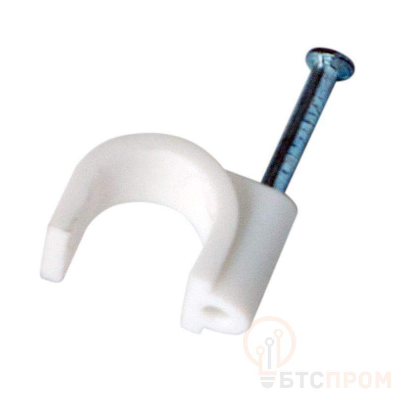 Круглый крепеж 10 мм с гвоздем предназначен для фиксации круглого кабеля к деревянной поверхности. Такой крепеж будет особенно полезен для использования на даче или в частном деревянном доме. Представляет собой дугообразную скобу белого цвета, выполненную из качественного пластика, с гвоздем в специальном отверстии. Скоба используется для мгновенного и надежного крепления проводов и кабелей к поверхностям стен, несущих конструкций и потолков. Гвоздь выполнен из закаленной стали, что позволяет закрепить его даже в плотной и твердой древесине без риска погнуть или сломать.