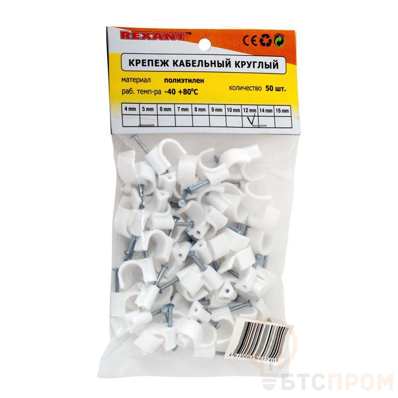 Круглый крепеж 12 мм с гвоздем предназначен для фиксации круглого кабеля к деревянной поверхности. Такой крепеж будет особенно полезен для использования на даче или в частном деревянном доме. Представляет собой дугообразную скобу белого цвета, выполненную из качественного пластика, с гвоздем в специальном отверстии. Скоба используется для мгновенного и надежного крепления проводов и кабелей к поверхностям стен, несущих конструкций и потолков. Гвоздь выполнен из закаленной стали, что позволяет закрепить его даже в плотной и твердой древесине без риска погнуть или сломать.
