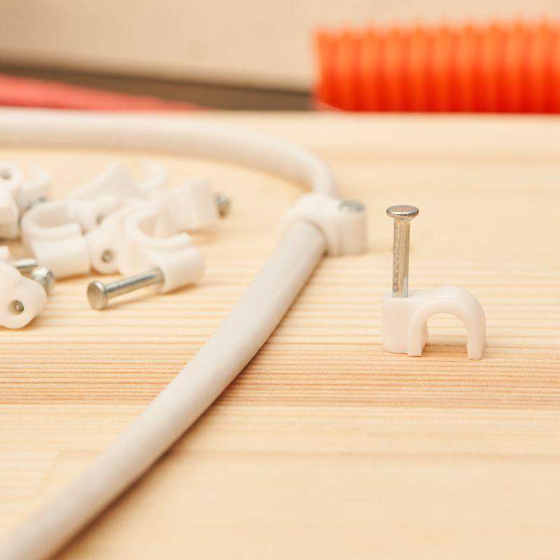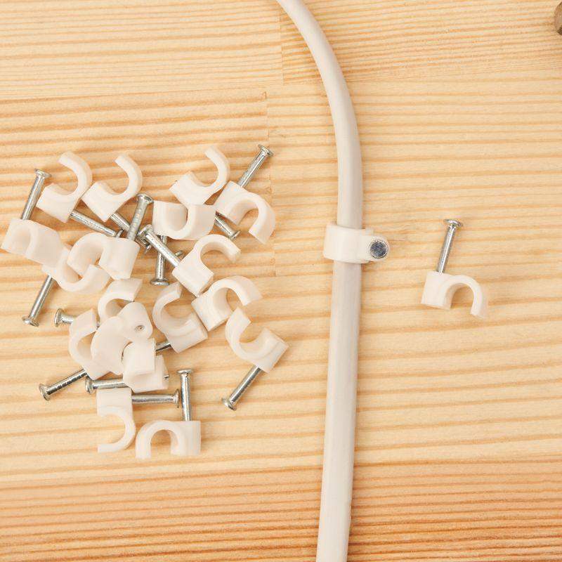 Высококачественный круглый крепеж кабеля REXANT представляет собой дугообразную пластиковую скобу диаметром 5 мм с гвоздём. Используется для мгновенного, а главное надёжного крепления проводов и кабелей к поверхностям стен, несущих конструкций и потолков. Гвоздик выполнен из закаленного металла, что позволит надежно забивать его даже в плотные и твердые материалы, не опасаясь сломать или погнуть гвоздь. Размеры скобы (высота/ширина): 6х5 мм Размеры гвоздя (диаметр/длина): 1,7х14 мм Скоба предназначена для круглого кабеля. В упаковке 20 шт. Цвет: белый.