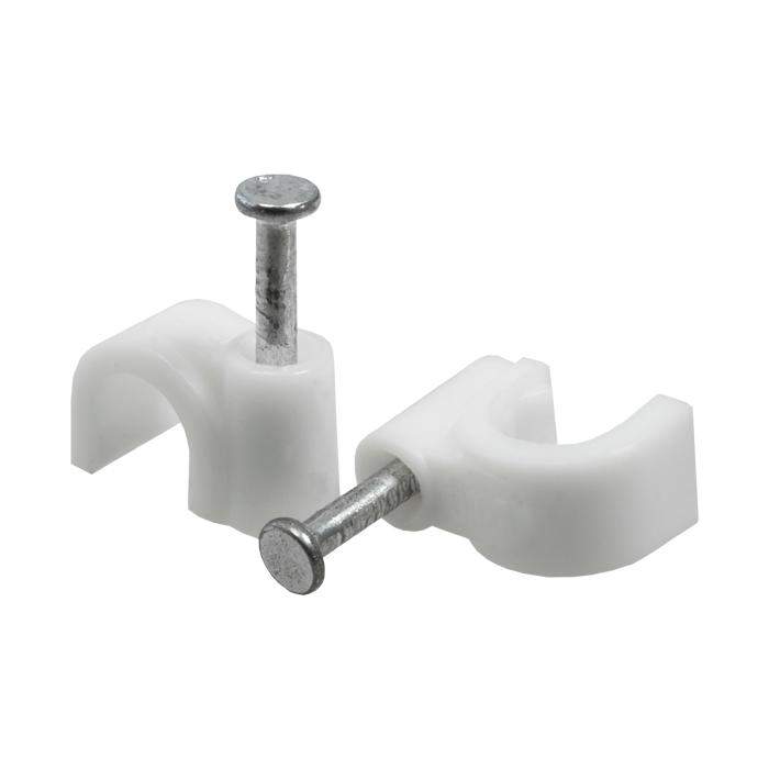 Круглый крепеж кабеля SUPRLAN 5 мм представляет собой дугообразную пластиковую скобу диаметром 5 мм с гвоздём. Данный крепеж предназначен для монтажа круглых кабелей и проводов на деревянных поверхностях и гипсокартоне. Гвоздь из закаленной стали обеспечивает надежное крепление даже в плотные и твердые материалы