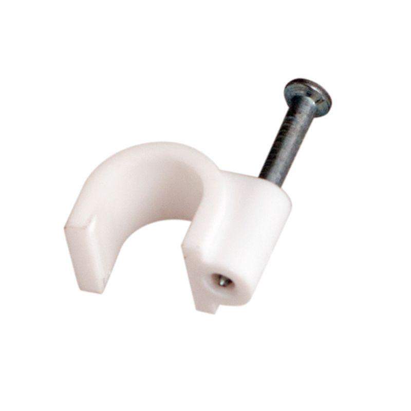 Высококачественный круглый крепеж кабеля REXANT представляет собой дугообразную пластиковую скобу диаметром 8 мм с гвоздём. Используется для мгновенного, а главное надёжного крепления проводов и кабелей к поверхностям стен, несущих конструкций и потолков. Гвоздик выполнен из закаленного металла, что позволит надежно забивать его даже в плотные и твердые материалы, не опасаясь сломать или погнуть гвоздь. Размеры скобы (высота/ширина): 9,5х8,0 мм Размеры гвоздя (диаметр/длина): 2х19 мм Скоба предназначена для круглого кабеля. В упаковке 20 шт. Цвет: белый.