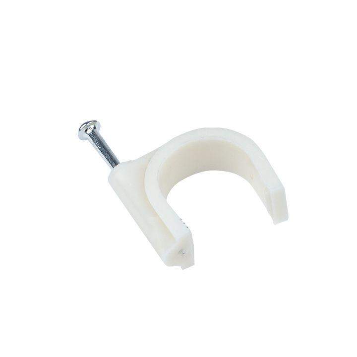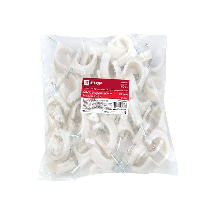 Скоба крепежная круглая с гвоздем d22мм пластик. (уп.50шт) EKF plcn-sr-22 фото в каталоге от BTSprom.by