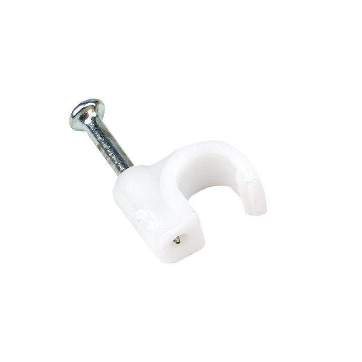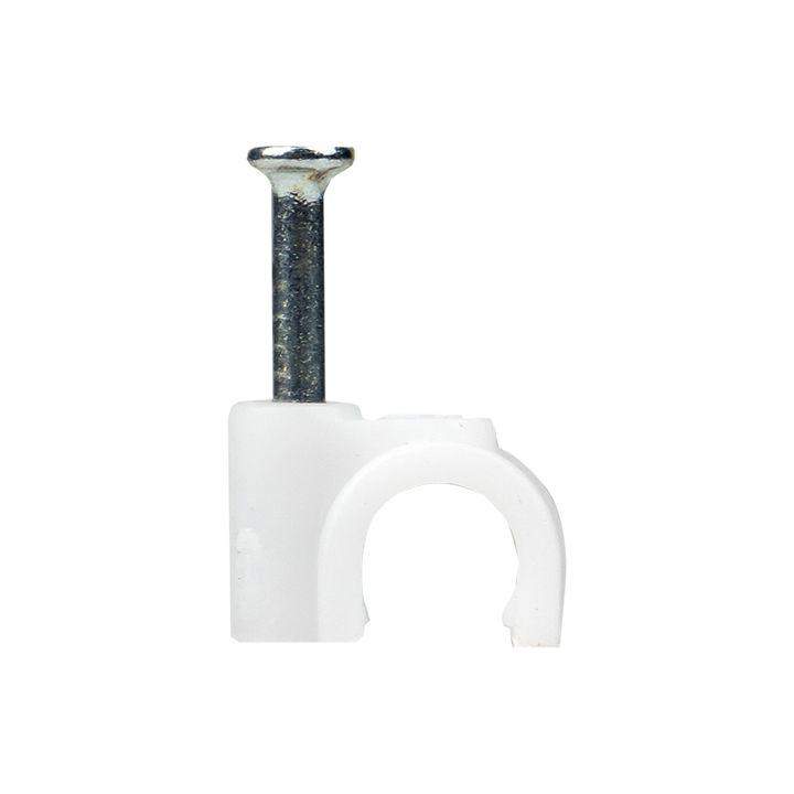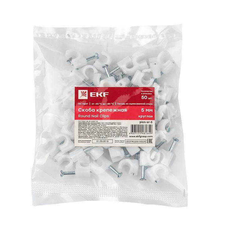 Скоба крепежная круглая с гвоздем d5мм пластик. (уп.50шт) EKF plcn-sr-5 фото в каталоге от BTSprom.by