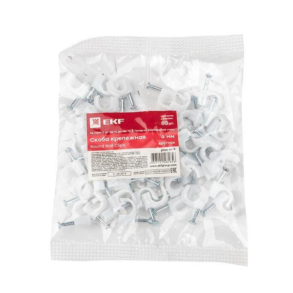 Скоба крепежная круглая с гвоздем d6мм пластик. (уп.50шт) EKF plcn-sr-6 фото в каталоге от BTSprom.by
