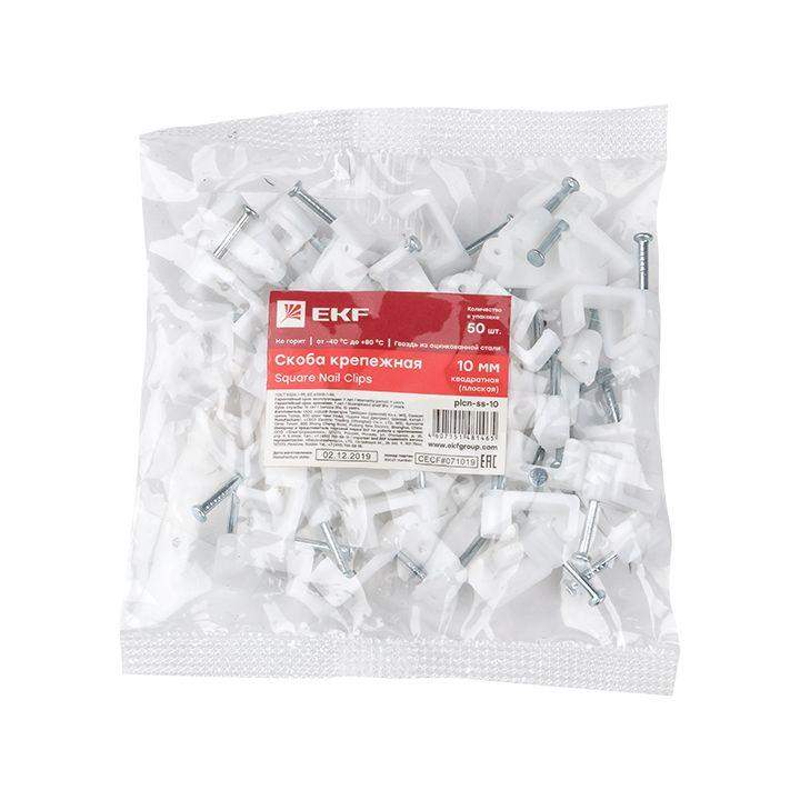 Скоба крепежная квадратная плоская 10мм (уп.50шт) EKF plcn-ss-10 фото в каталоге от BTSprom.by