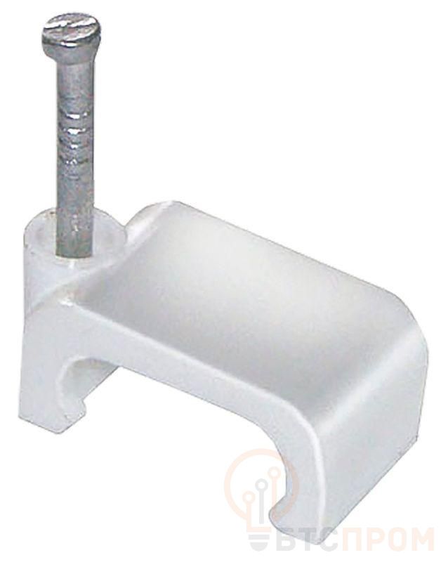 Скоба с гвоздём предназначена для быстрого и надежного крепления плоских кабелей к дереву, прессованному картону, швам кирпичной кладки, к штукатурке, бетону, кирпичу. Изготовлены из гибкого негорючего ударопрочного полипропилена, гвоздь - закаленная оцинкованная сталь.