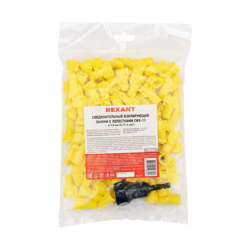 Зажим соединительный изолирующий с лепестками СИЗ-11 d9.8мм 1-8.5кв.мм желт. (уп.100шт) Rexant 08-0750