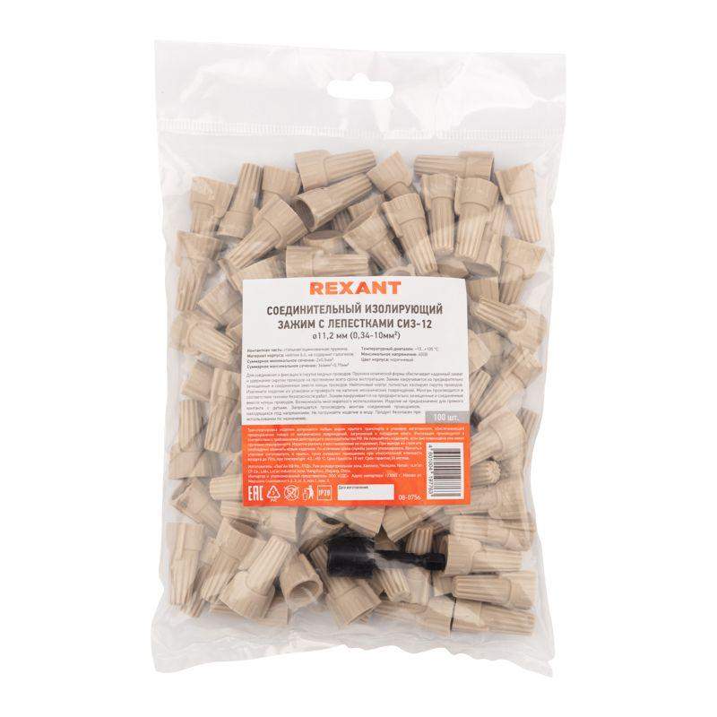 Зажим соединительный изолирующий с лепестками СИЗ-12 d11.2мм 1-12.75кв.мм корич. (уп.100шт) Rexant 08-0756