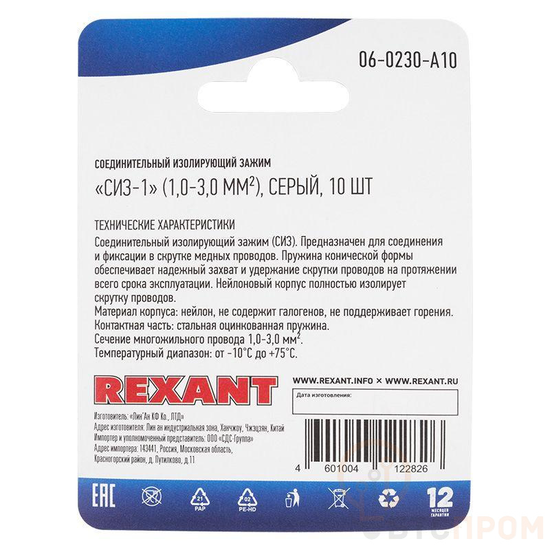 Соединительный изолирующий зажим, серый. Предназначен для соединения и фиксации в скрутке медных проводов. Контактная часть: стальная оцинкованная пружина. Материал корпуса: нейлон 6.6, не содержит галогенов, не поддерживает горения. Пружина конической формы обеспечивает надежный захват и удержание скрутки проводов на протяжении всего срока эксплуатации. Нейлоновый корпус полностью изолирует скрутку проводов. Температурный диапазон: от -10°С до +75°С