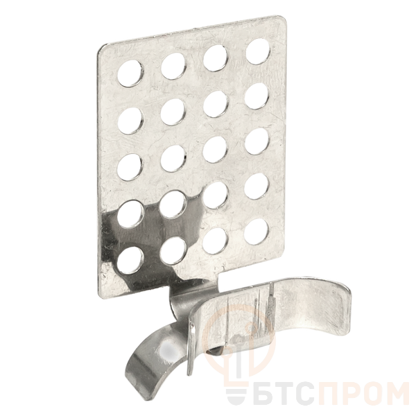 Зажим предназначен для крепления нагревательных кабелей в случае обогрева края кровли. Крепление к кровле осуществляется с помощью Полиуретанового клея - герметика Рабберфлекс ПРО ПУ-50 (или аналога). Поставляется в упаковках по 50 шт.