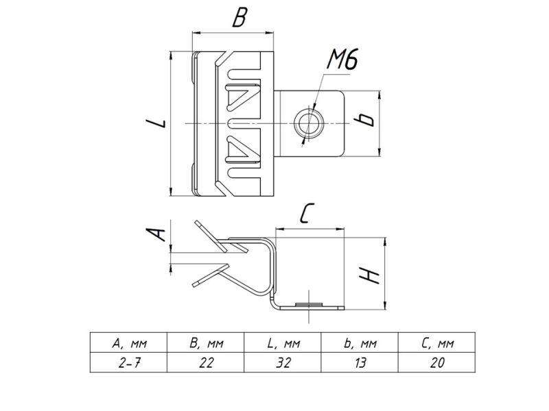 –Зажим балочный 3-8мм с отгибом и резьбой М6 PROxima EKF ZB3-8-M6G