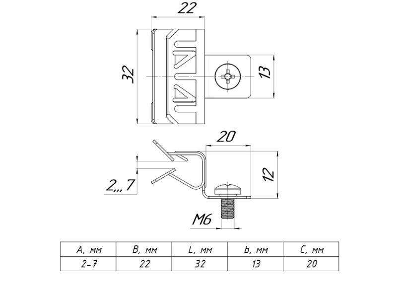 –Зажим балочный 3-8мм с отгибом и винтом М6х9 PROxima EKF ZB3-8-V6x9G
