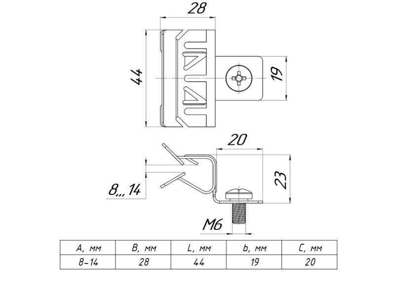 Зажим балочный 8-14мм с отгибом и винтом М6х9 PROxima EKF ZB8-14-V6x9G фото в каталоге от BTSprom.by