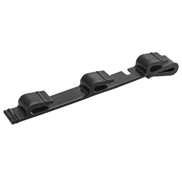 Крепежные зажимы выполнены из гибкого материала – термопластичного эластомера, что обеспечивает удобство монтажа, а также отсутствие возможности механического повреждения кабеля. Конфигурация крепежных зажимов упрощает и значительно ускоряет процесс монтажа греющего кабеля на кровле и в элементах водосточной системы. Основным преимуществом является установка крепежных зажимов отдельно от нагревательного кабеля, после чего нагревательный кабель просто защелкивается в специальные проушины. Данный метод позволяет значительно упростить и ускорить выполнение монтажных работ.
