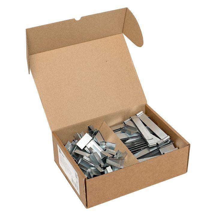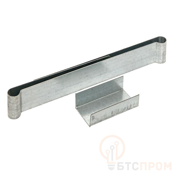 Металлический крепеж ТСР, КТСР представляет собой унифицированный крепеж, изготовленный из оцинкованной стали для крепления как саморегулирующихся (ТСР), так и резистивных нагревательных кабелей постоянной мощности (КТСР). Позволяют осуществить надежное и безопасное крепление нагревательных кабелей в обогреваемых зонах и предотвращает скручивание или самопересечение двух ниток кабеля между собой при монтаже. Выпускается для крепления как одной нитки кабеля к обогреваемой поверхности, так и двух ниток нагревательного кабеля между собой. Для монтажа зажимов в обогреваемых желобах применяется полоса стальная оцинкованная 0,5х15 мм, для монтажа зажимов с нагревательным кабелем в водосточных трубах – трос стальной в ПВХ оболочке.