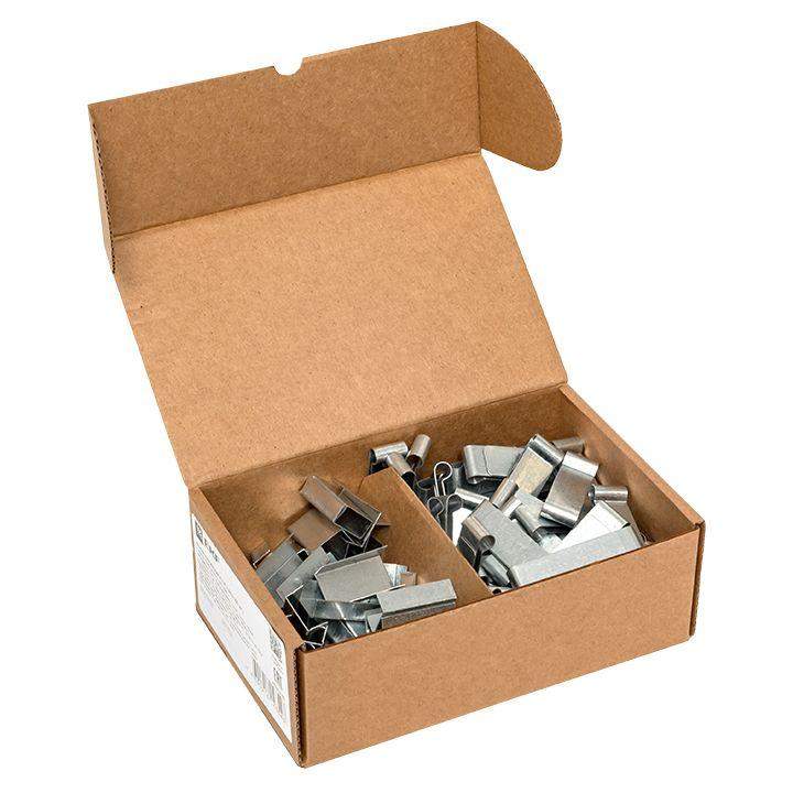 Металлический крепеж ТСР, КТСР представляет собой унифицированный крепеж, изготовленный из оцинкованной стали для крепления как саморегулирующихся (ТСР), так и резистивных нагревательных кабелей постоянной мощности (КТСР). Позволяют осуществить надежное и безопасное крепление нагревательных кабелей в обогреваемых зонах и предотвращает скручивание или самопересечение двух ниток кабеля между собой при монтаже. Выпускается для крепления как одной нитки кабеля к обогреваемой поверхности, так и двух ниток нагревательного кабеля между собой. Для монтажа зажимов в обогреваемых желобах применяется полоса стальная оцинкованная 0,5х15 мм, для монтажа зажимов с нагревательным кабелем в водосточных трубах – трос стальной в ПВХ оболочке.