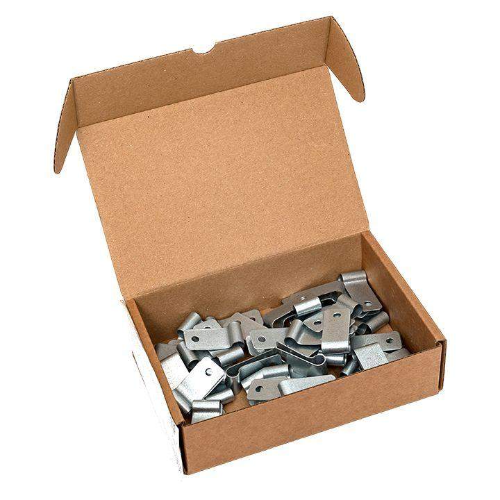 Металлический крепеж ТСР, КТСР представляет собой унифицированный крепеж, изготовленный из оцинкованной стали для крепления как саморегулирующихся (ТСР), так и резистивных нагревательных кабелей постоянной мощности (КТСР). Позволяют осуществить надежное и безопасное крепление нагревательных кабелей в обогреваемых зонах и предотвращает скручивание или самопересечение двух ниток кабеля между собой при монтаже. Выпускается для крепления как одной нитки кабеля к обогреваемой поверхности, так и двух ниток нагревательного кабеля между собой. Для монтажа зажимов в обогреваемых желобах применяется полоса стальная оцинкованная 0,5х15 мм, для монтажа зажимов с нагревательным кабелем в водосточных трубах – трос стальной в ПВХ оболочке.