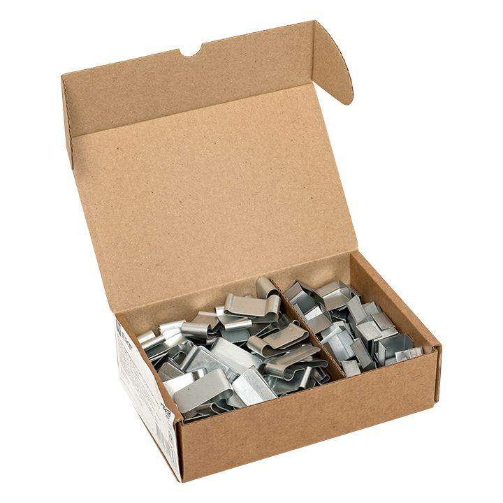 Металлический крепеж ТСР, КТСР представляет собой унифицированный крепеж, изготовленный из оцинкованной стали для крепления как саморегулирующихся (ТСР), так и резистивных нагревательных кабелей постоянной мощности (КТСР). Позволяют осуществить надежное и безопасное крепление нагревательных кабелей в обогреваемых зонах и предотвращает скручивание или самопересечение двух ниток кабеля между собой при монтаже. Выпускается для крепления как одной нитки кабеля к обогреваемой поверхности, так и двух ниток нагревательного кабеля между собой. Для монтажа зажимов в обогреваемых желобах применяется полоса стальная оцинкованная 0,5х15 мм, для монтажа зажимов с нагревательным кабелем в водосточных трубах – трос стальной в ПВХ оболочке.