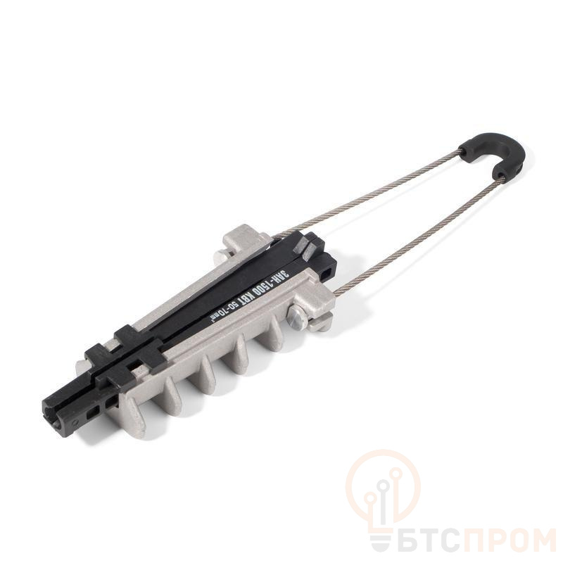 • Зажим представляет собой литой корпус из коррозионно-стойкого алюминиевого сплава, тросика из нержавеющей стали и полимерных клиньев